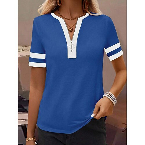 Per donna Maglietta Semplice Moda Moderno Casual Manica Corta Scollo a V Top Regolari Quotidiano Weekend Nero Vino Verde militare Blu Cachi Estate Primavera
