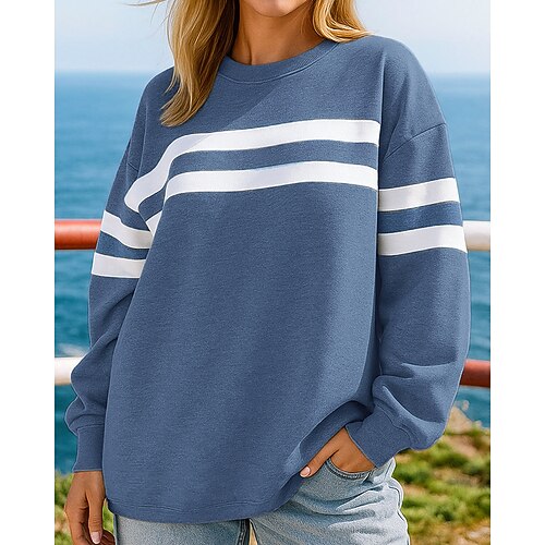 Per donna Felpa pullover Top casual Manica Lunga Top Athleisure Autunno A righe Cotone Leggero All'aperto Viaggio Sportivo abbigliamento sportivo Abbigliamento sportivo Nero Blu Blu scuro