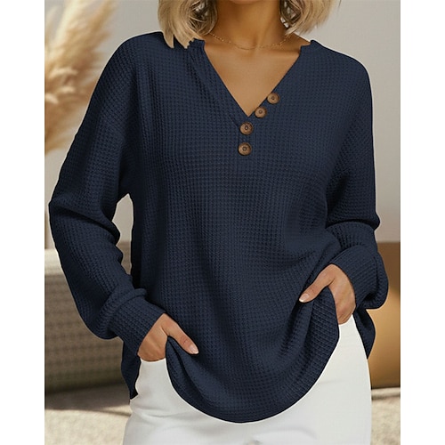 Per donna Blusa Semplice Moderno Casual Manica Lunga Scollo a V Top Regolari Quotidiano Ferie Uscire Bottoni Nero Bianco Rosa Verde Cachi Autunno
