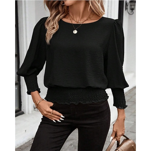 Per donna Blusa Top Eleganti Tinta unica Semplice Elegante Vintage Signore Manica Lunga Girocollo Top Regolari Quotidiano Lavoro Uscire Arricciato Patchwork Blu Nero Bianco Rosa Oro Estate Primavera