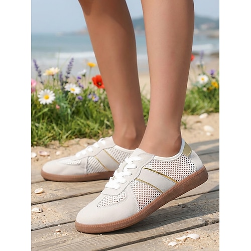 Sneakers casual da donna in mesh traspirante: scarpe da passeggio leggere con lacci, comode scarpe sportive estive da donna, ideali per viaggi, passeggiate in spiaggia, uso quotidiano e attività