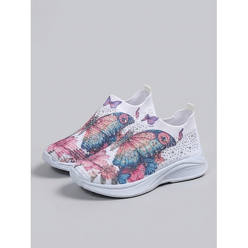 Sneakers slip-on da donna con stampa a farfalle e strass: scarpe da passeggio leggere e traspiranti, ideali per viaggi, attività all'aperto e per l'uso quotidiano.