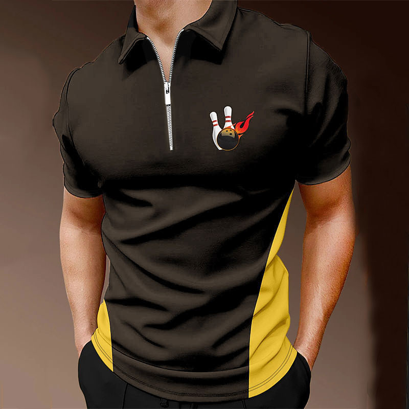 Men's Bowling Ball Sports Polo Shirts Golf Shirt Short Sleeve Polo Shirts Collared Shirts Casual Sportswear Vacation Wear 3D Print Quarter Zip Polo Black Yellow Blue