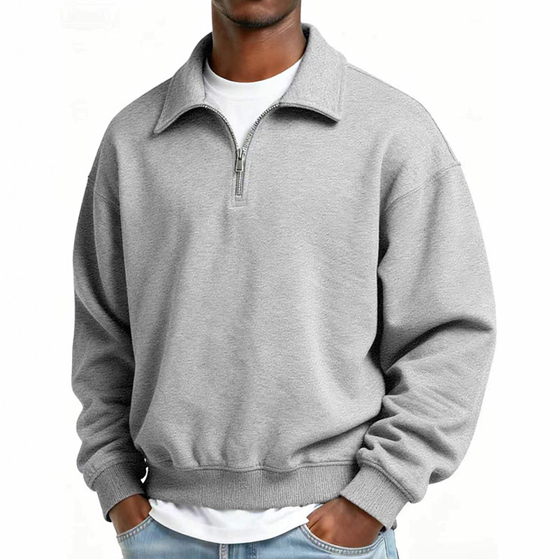 Men's Polo Polo Shirts Vacation Street Quarter Zip Long Sleeve Fashion Basic Plain Spring Fall Tailored Fit Blue Black Green Light Grey Coffee Polo