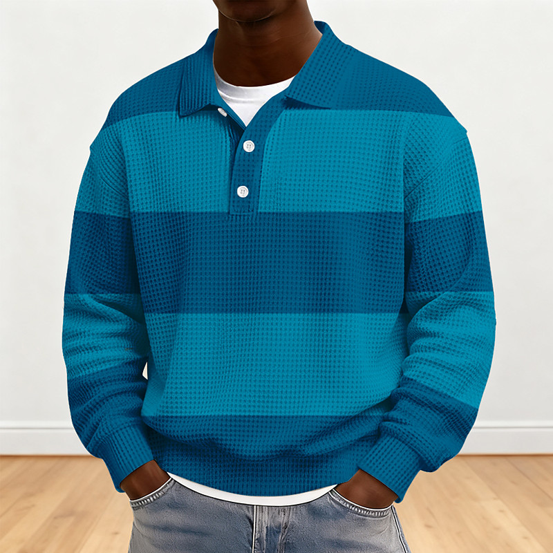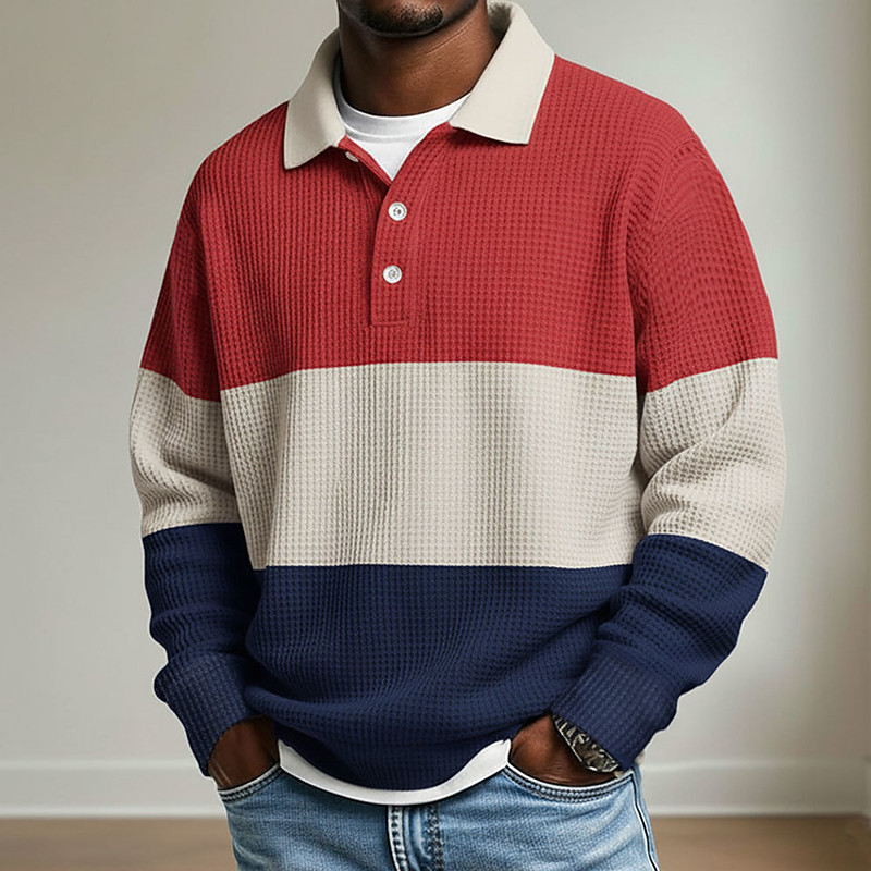 Men's Striped Waffle Polo Shirts Rugby Polo Long Sleeve Polo Shirts Collared Shirts Casual Athleisure Daily Wear Buttons Spring Fall Winter Blue Red Orange