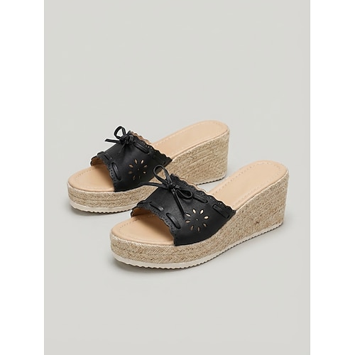 Sandali con zeppa espadrillas da donna azzurri - eleganti ciabatte traforate al laser con dettaglio a fiocco per vacanze in crociera di lusso e feste estive sul ponte. abbigliamento da resort