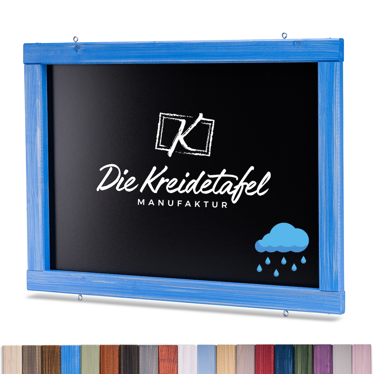 Die Kreidetafel Manufaktur Wetterfeste Outdoor Kreidetafel mit Holzrahmen / Blau 105x55cm