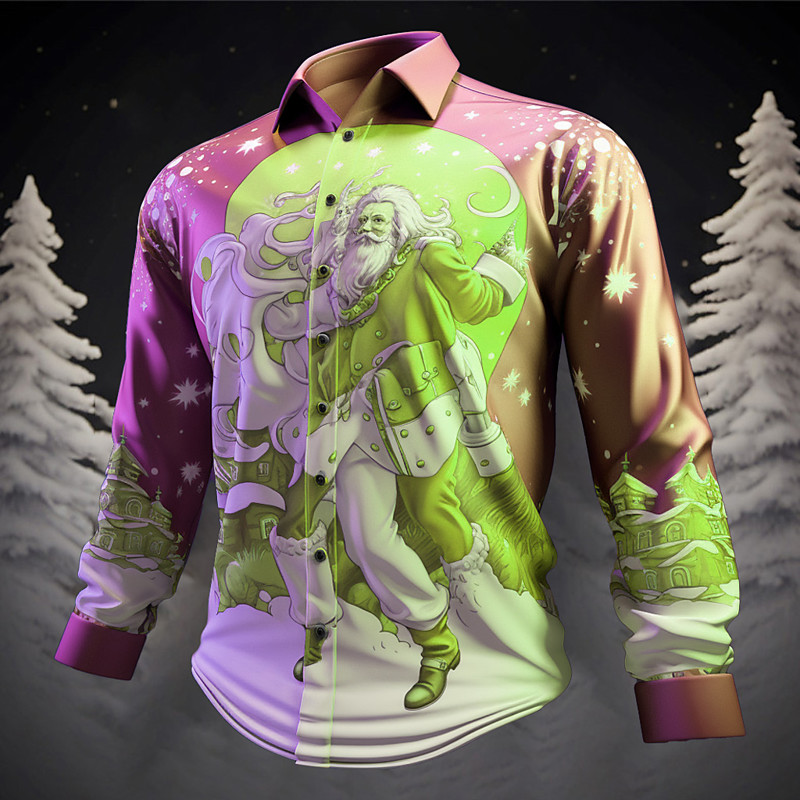 Christmas Men's Santa Claus Printed Shirts Santa Claus Casual Daily Wear Going out Fall Winter Turndown Long Sleeve Yellow, Pink, Royal Blue S, M, L 4-Way Stretch Fabric Christmas