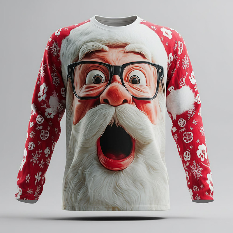 Christmas Men's Santa Claus 3D Funny T Shirt Long Sleeve T shirt 3D Print Crew Neck Shirt Fashion Basic 3D Street Casual Daily Black Red Red 2 Summer Spring Clothing Apparel S M L XL XXL XXXL