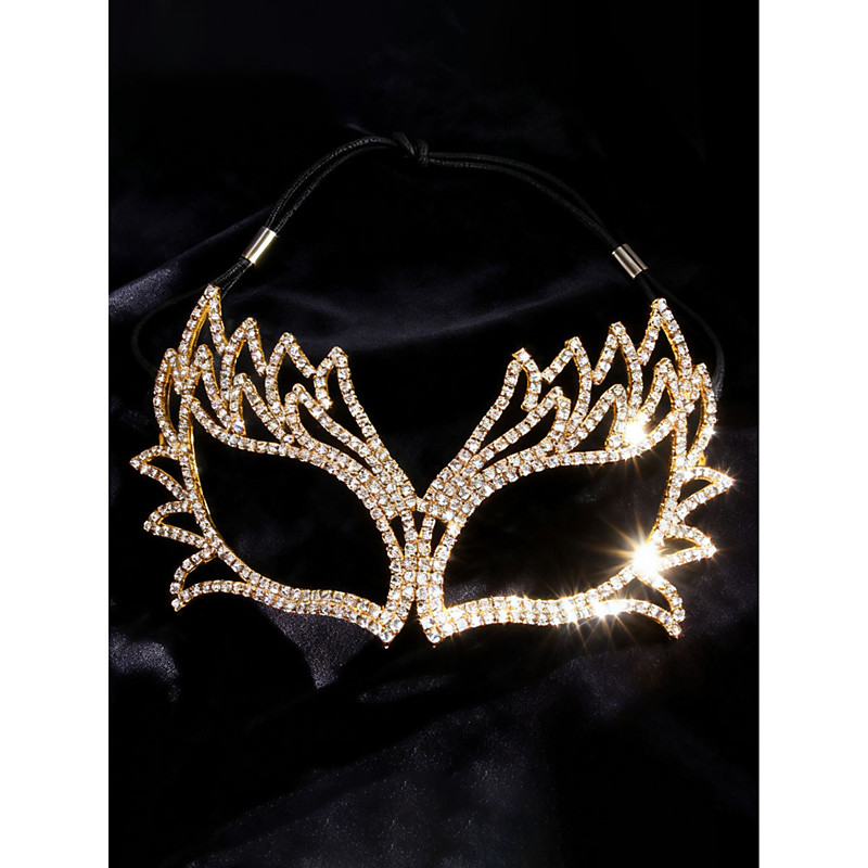 Women's Crystal Rhinestone Masquerade Mask - Luxury Sparkling Party Mask with Wing Design for Masquerade Ball, Prom or Costume Party