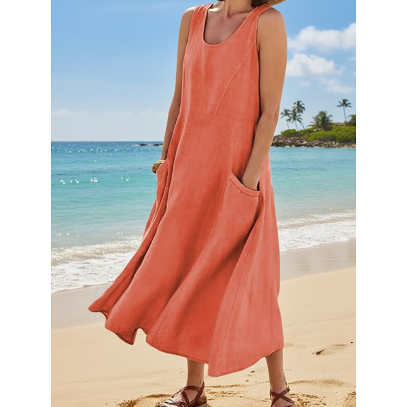 Women's Long Dress Maxi Dress Linen-Inspired Dresses Cotton Linen Dresses Slip Dress Boho Dress Vintage Fashion Outdoor Party Holiday Regular Fit Plain Sleeveless V Neck Brown Green Light Grey Dark