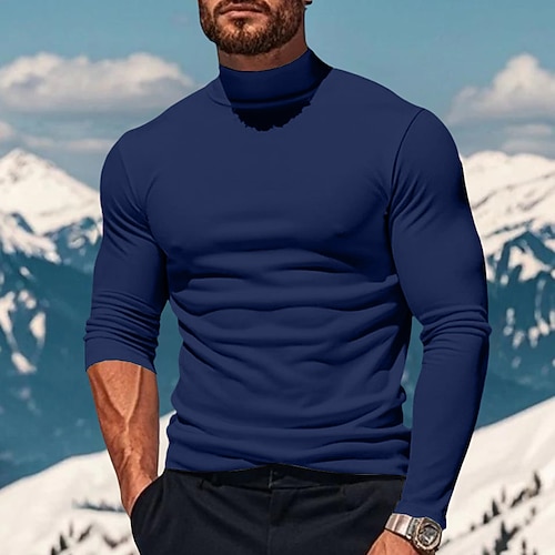 Per uomo Maglietta Camicia a Maniche Lunghe Finto dolcevita Manica Lunga Dolcevita Collo di pile Inverno Primavera Autunno Tinta unica Quotidiano Casual Stile da Strada A lupetto Puro Formale