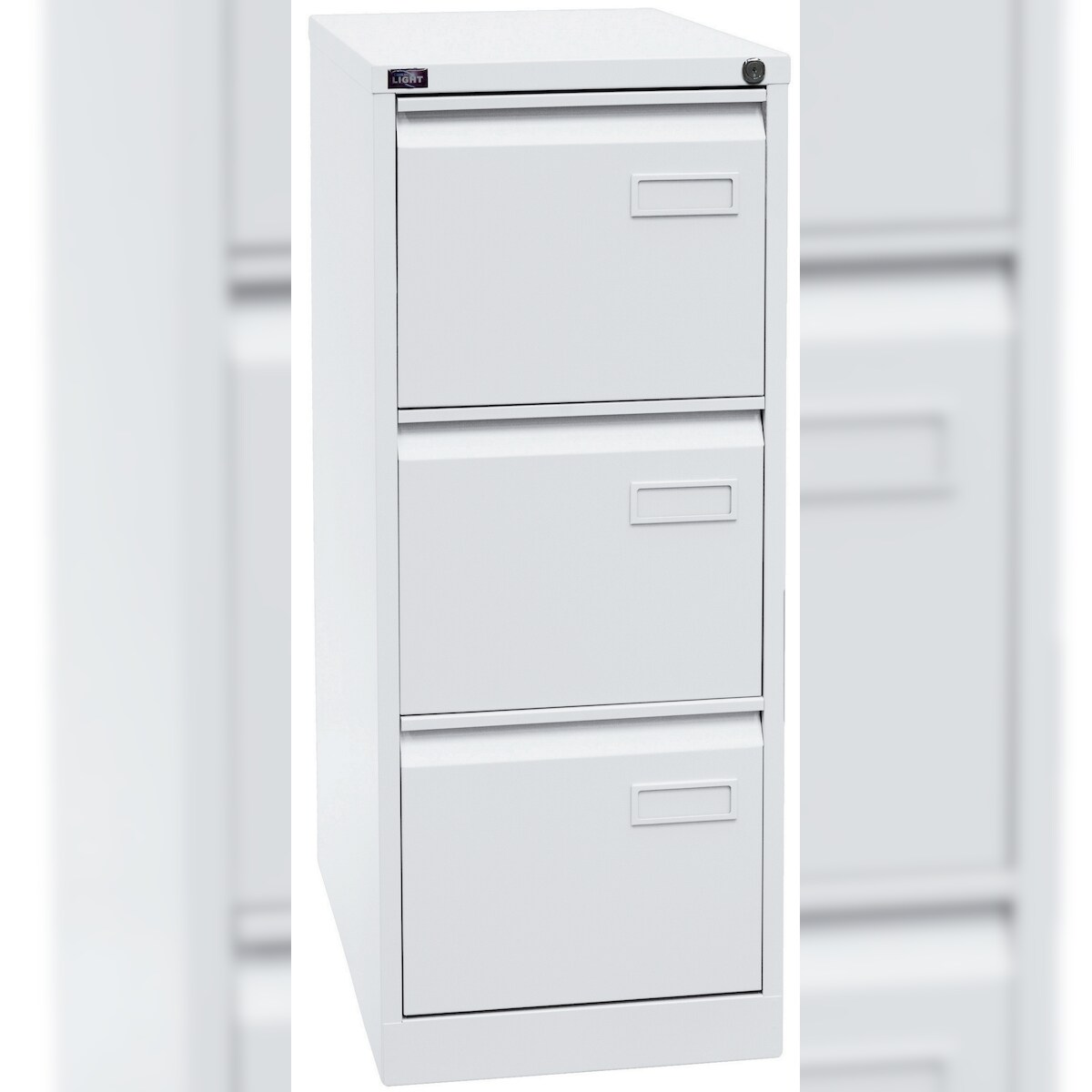 BISLEY Light Hängeregistraturschrank mit Schloss aus Metall in verkehrsweiß, 3 Schubladen, einbahnig - Hängeregisterschrank abschließbar,