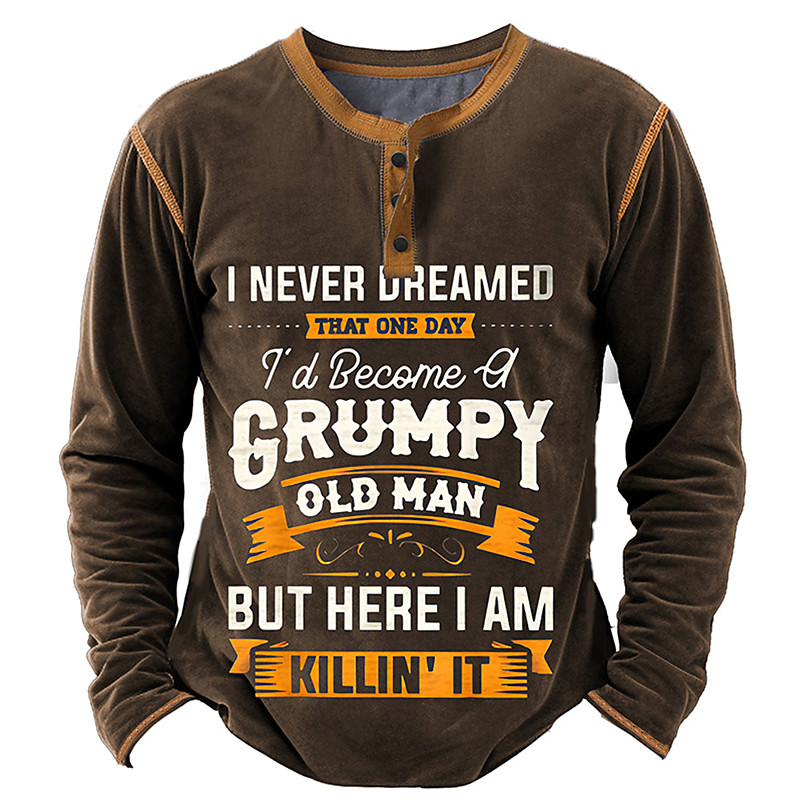 Men's Graphic Letter Henley Shirt Long Sleeve 3D Print Fashion Daily Casual Casual Holiday Going out Spring Fall Black Brown Army Green Dark Blue Henley Henley T-Shirt