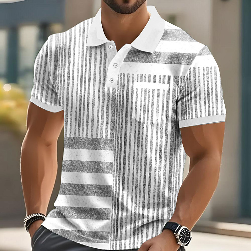 Men's Graphic Vertical Stripes Polo Short Sleeve Polo Shirts Collared Shirts Business Casual Outdoor Athleisure Daily Wear Buttons 3D Print Summer Blue Brown Green