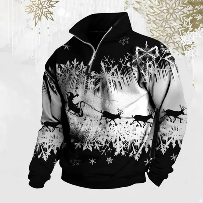Christmas Men's Elk Snowflake Zip Polo Shirts Long Sleeve Polo Shirts Lapel Casual Outdoor Festival Outfit 3D Print Fall Winter Black Red Green