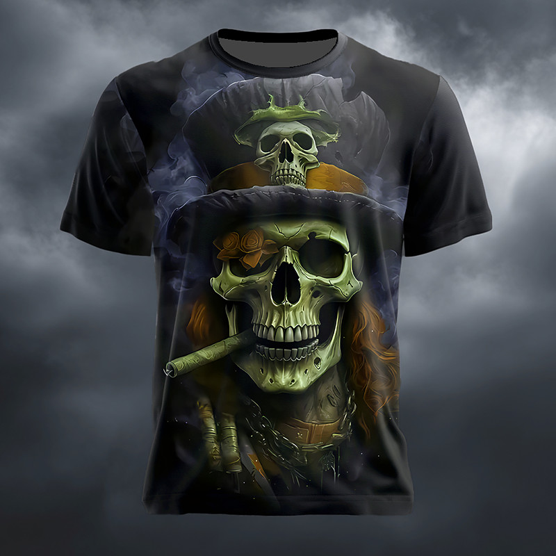 Men's Optical Illusion 3D Pirate T Shirt Short Sleeve T shirt 3D Print Crew Neck Shirt Exaggerated Designer Horror Party Street Holiday Red Blue Green Summer Spring All Seasons Clothing Apparel S M L