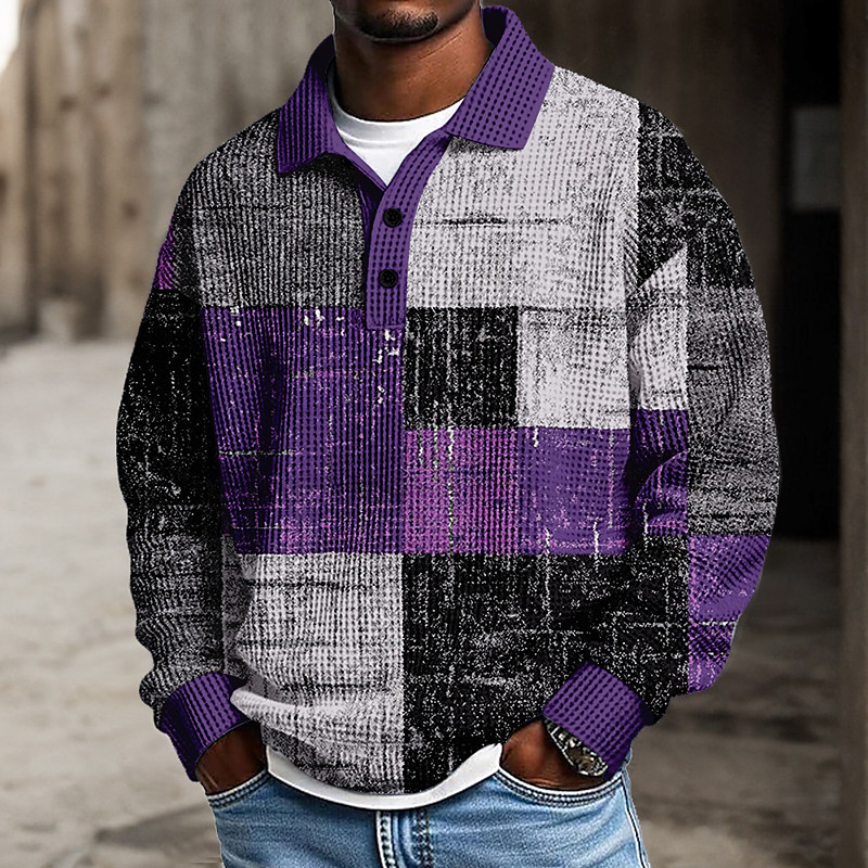 Men's Patchwork Polo Textured Long Sleeve Polo Shirts Lapel Casual School Athleisure Daily Wear 3D Print Spring Fall Winter Red Purple Green