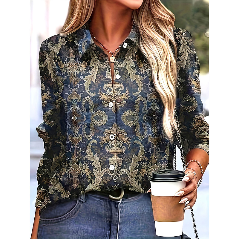 Women's Shirt Dressy Tops Formal Work Shirt Graphic Paisley Elegant Stylish Modern Long Sleeve Collar Regular Tops Work Party Evening Wear Daily Blue Fall Winter Spring, Fall, Winter, Summer