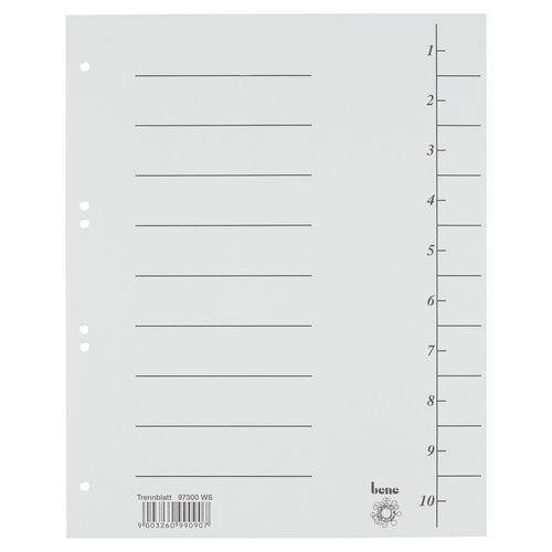 Bene 1 bis 10 Trennblätter DIN A4 Weiß 10-teilig Pappkarton 6 Löcher 97300WS 100 Stück
