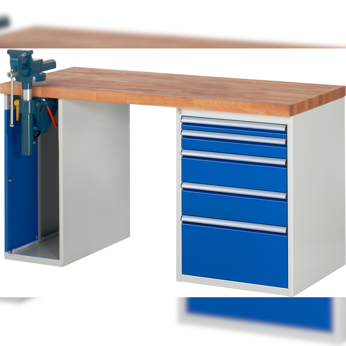 PROREGAL Werkbank Serie 7000 - Modell 7511 | HxBxT 89x150x70cm | 5x Schublade + 1x Schrank | Schubladenmaße 1x60 + 1x90 + 2x150 + 1x270mm