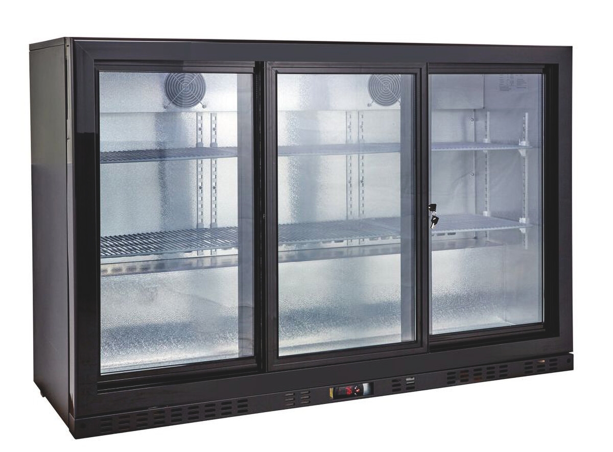 GastroHero Barkühlschrank ECO 350 schwarz mit Schiebetüren und LED-Beleuchtung – unterbaufähig, energiesparend und ideal für Bars & Gastronomie