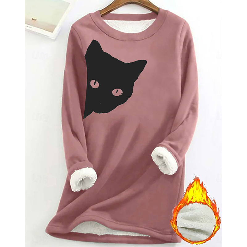 Women's Pullover Sweatshirt Animal Cat Fashion Basic Casual Long Sleeve Crew Neck Long Tops Street Dailywear Casual Print Fleece Lined Black Pink Dark Pink Blue Fall Winter