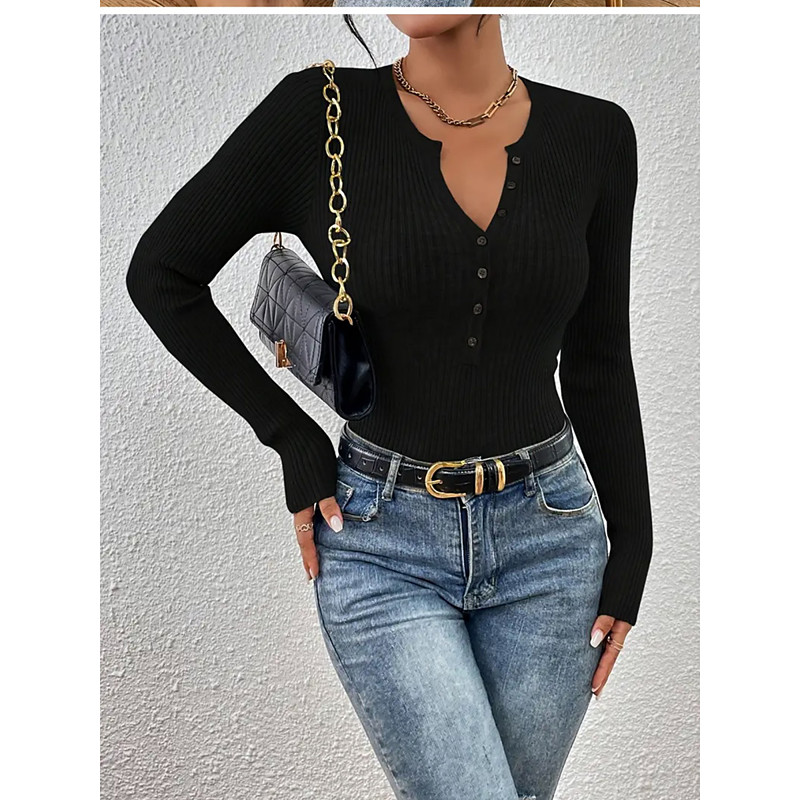 Women's Sweater Casual Soft Pure Color Ribbed Crew Neck Buttons Knitted Long Sleeve Regular Tops Knit Outdoor Daily Weekend Black Wine Fall Winter