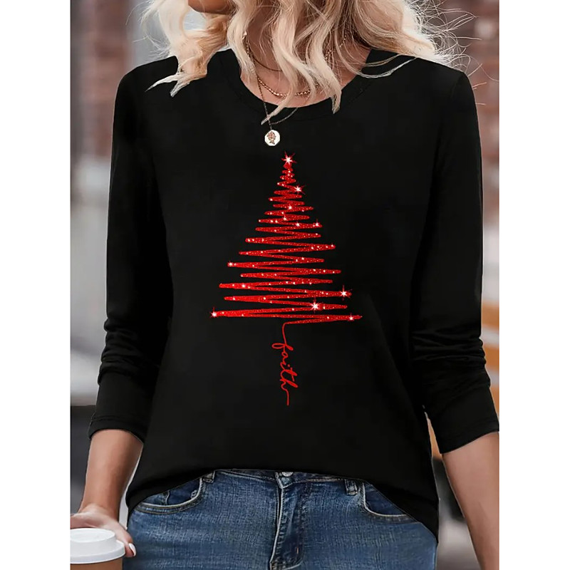 Christmas Women's Christmas Tree T Shirt Graphic Vintage Fashion Stylish Long Sleeve Crew Neck Regular Tops Daily Weekend Print Black Fall Winter
