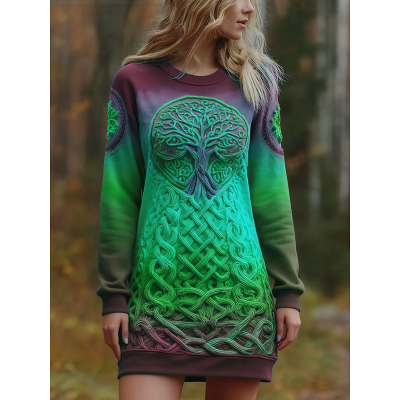 Women's Pullover Sweatshirt Graphic Geometric Tribal Warm Active Vintage Long Sleeve Crew Neck Regular Tops Casual Street Dailywear Patchwork Print Green Khaki Gray Spring Fall Winter