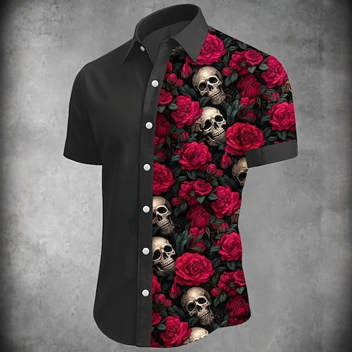 Maglietta uomo costumi teschio camicia a bottoni maniche corte stile punk gotico scuro vacanza estate primavera risvolto camicie colletto stampa 3D nera bianca