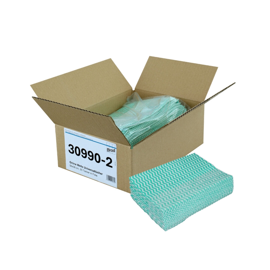 Grüne Welle, Universaltücher mit Textilcharakter, grün-weiß, 55 % Viskose, 45 % Polyester, ca. 50x38 cm, 25 Tücher
