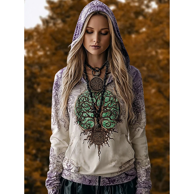 Women's Viking Pullover Hoodie Sweatshirt Tribal Vintage Casual Long Sleeve Hooded Regular Tops Casual Sports Khaki Spring Fall Winter