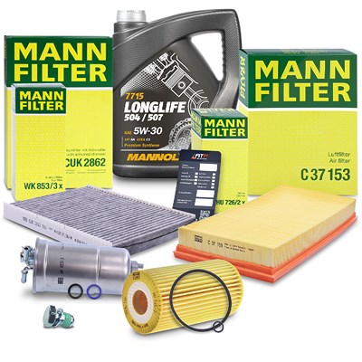Mann-filter Inspektionspaket Set B + 5l 5W-30 Motoröl [Hersteller-Nr. 41108722] für Audi, VW, Skoda