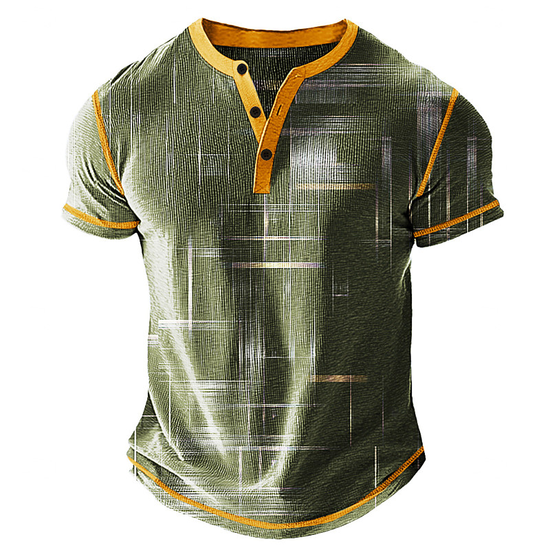 Men's Graphic Abstract Henley Shirt Waffle T Shirt Short Sleeve Daily Retro Vintage Classic Sports Outdoor Casual Holiday Spring Summer All Seasons Light Pink Green Khaki Light Grey Henley Henley