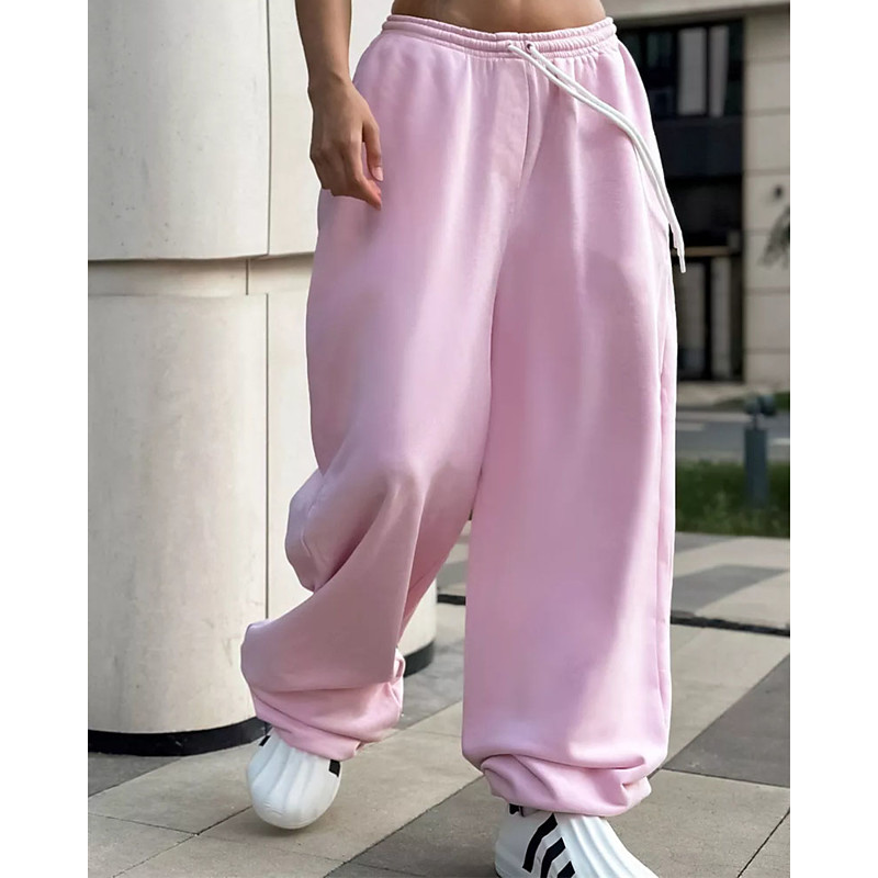 Women's Culottes Wide Leg Chinos Streetwear Casual Full Length Medium Waist Plain Pocket Elastic Drawstring Design Comfortable Micro-elastic Outdoor Vacation Daily Light Gray Yellow Pink Fall Loose