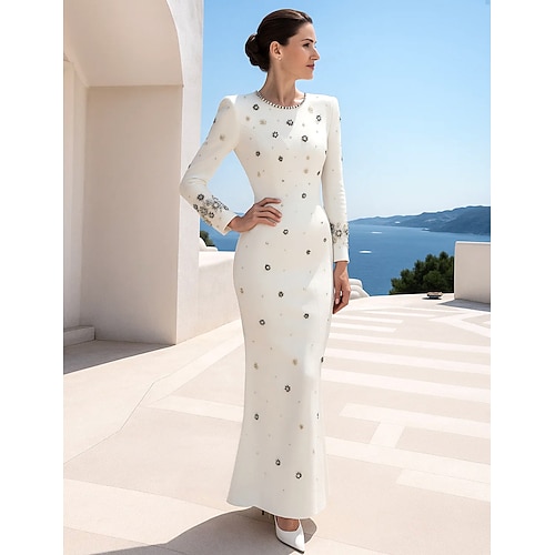 Abito da Prom Abito da Festa Floor Length Sheath Column Abiti Quinceanera Festa Elegante Maniche Lunghe Collo a Giro Sera Festa Matrimonio con Perline e Ricami
