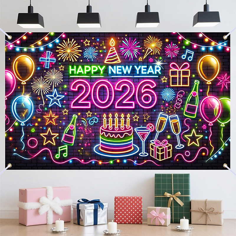New Year Tapestry Banners Blanket Happy New Year 2026 Cute Romantic 3D Bedroom Living Room Dorm Teens Room College Dorm Wall Porch Home Decor