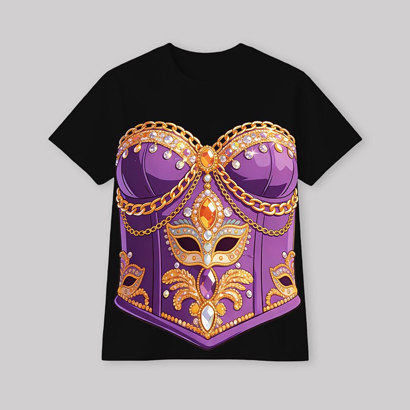 Mardi Gras 2026 T-shirt Sleeve T-shirt for Women's Adults' Hot Stamping for Carnival Mardi Gras Club Festival