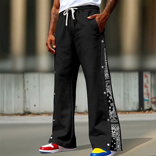 Herren Jogginghose Jogginghose mit weitem Bein Hose Baggy-Hosen Kordelzug Elastischer Bund Seitenknopf Farbblock Einfach Feuchtigkeitsableitend Atmungsaktiv Volle Länge Sport im Freien Lässig Täglich