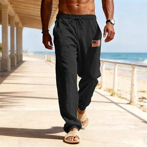 Per uomo Pantaloni di Lino Pantaloni Pantaloni Estivi Pantaloni da Spiaggia Coulisse Elastico in vita Bandiera Americana Comodità Traspirante All'aperto Quotidiano Ferie Vacanza Moda Verde militare