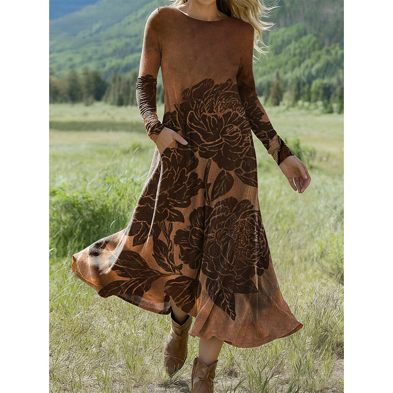 Women's Midi Dress Shirt Dress Casual Dress Fashion Modern Daily Beach Weekend Regular Fit Flower Long Sleeve Shirt Collar Black And White White Spring Fall
