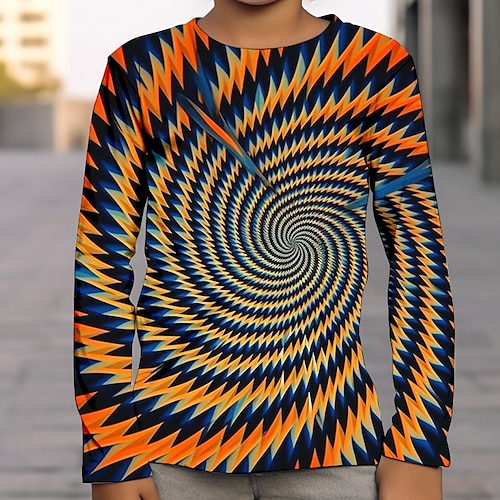 Jungen T-Shirt mit 3D-Grafik und optischer Täuschung, langärmlig, 3D-Druck, Sommer, Frühling, Herbst, Sport, Mode, Streetwear, Polyester, Kinder, 4–12 Jahre, Outdoor, lässig, täglich, normale Passform