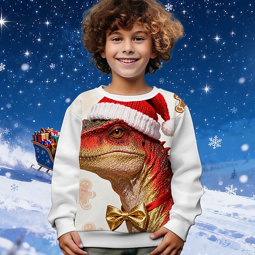 Weihnachten Jungen 3D Dinosaurier Sweatshirt Langarm Frühling Herbst Mode Basic Kinder 4-12 Jahre Rundhalsausschnitt Outdoor Lässig Täglich Normale Passform
