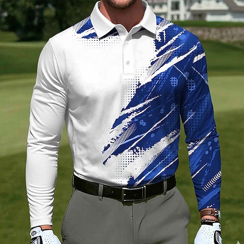 Per uomo Geometrico Golf Polo Polo Sportivi Manica Lunga Magliette polo Bavero Casual All'aperto Athleisure Abbigliamento quotidiano Stampa 3D Bottoni Primavera Autunno Blu Rosso Viola