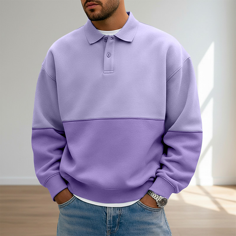 Men's Polo Sweatshirt Pullover Hoodie Sweatshirt Button Up Hoodie Blue Pink Purple Green Polo Collar Color Block Patchwork Color Block Casual Daily Sports Outdoor Streetwear Cool Sportswear Fall
