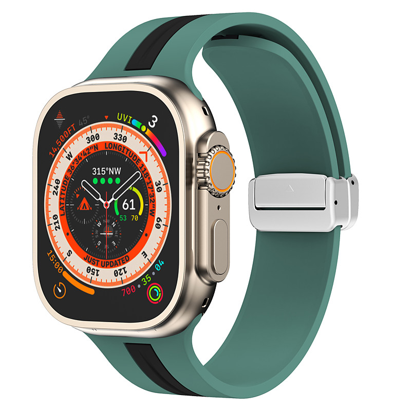 Sport Band Compatible with Apple Watch band 38mm 40mm 41mm 42mm 44mm 45mm 49mm Multilayer Magnetic Clasp Two Tone Silicone Carbon Fiber Strap Replacement Wristband for iwatch Ultra 3 2 Series 11 10 9
