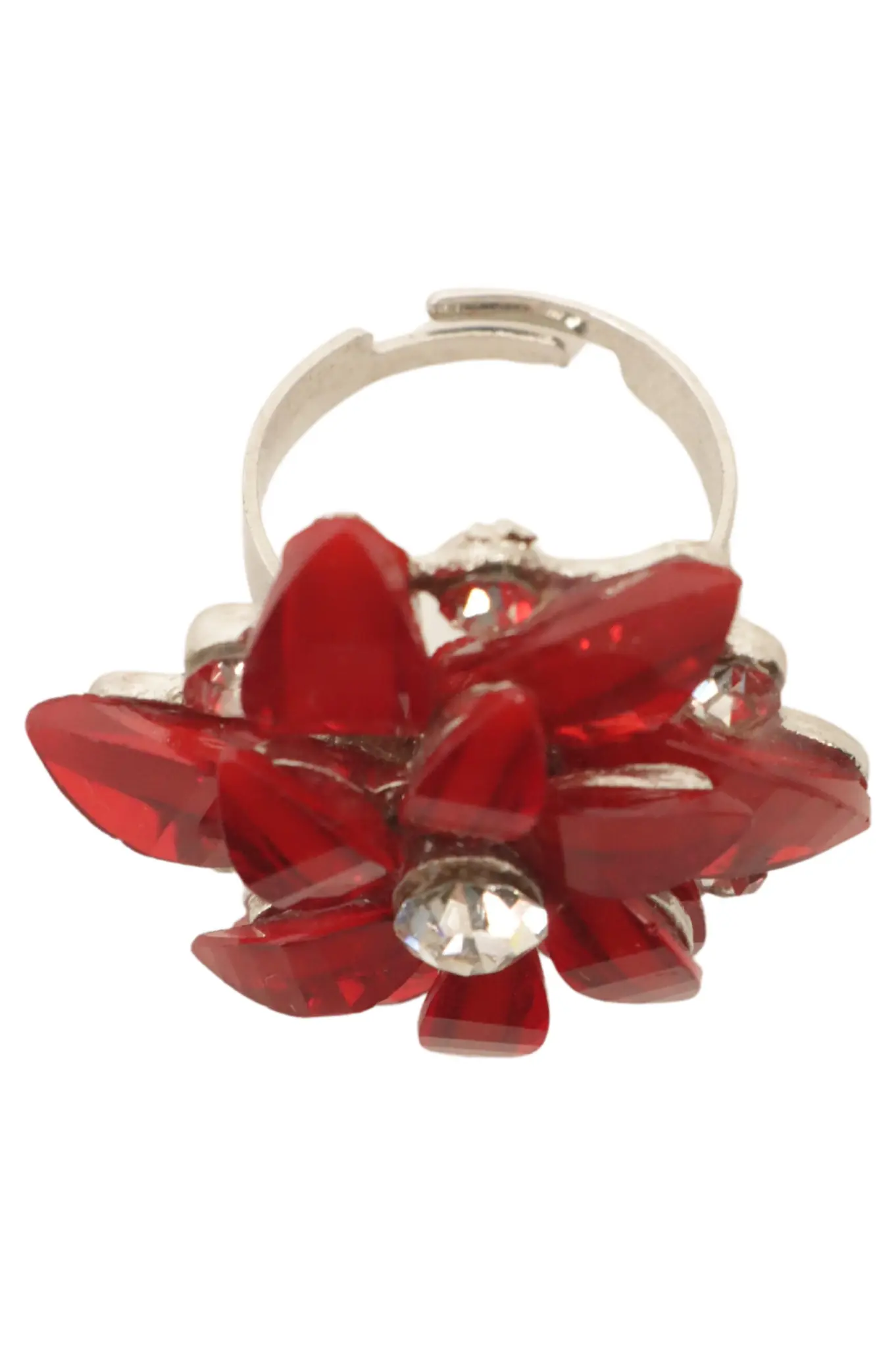 MARKENLOS Vintage Modeschmuck Ring Rot mit Strass Blumenmuster