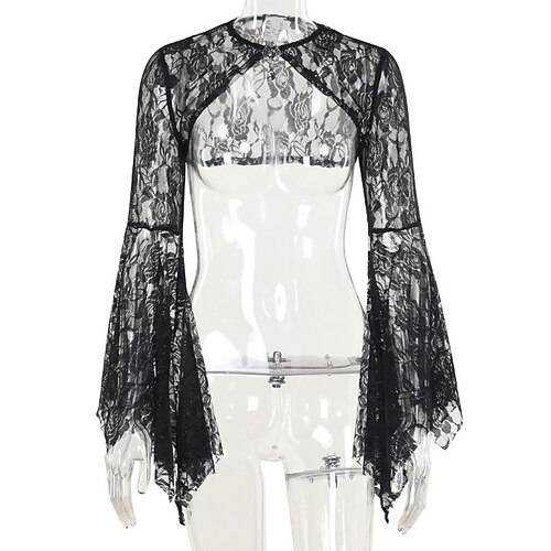Gotico Maxi Vestito Top con spalline Manica a Campana Strega Morticia Addams Pizzo Velluto Floreale Costume Per donna Fantasia Halloween Carnevale Performance Feste Adulti Top Vestito
