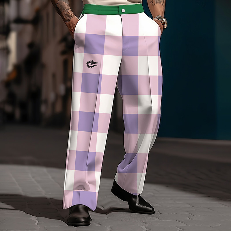 Men's Plaid Crocodile Grid Pattern Trousers Dress Pants Suit Pants Mid Waist Casual Dailywear Holiday Streetwear Relaxed Fit Flat Front Dress Pants with Side Pockets Spring Fall 3D Print Purple Orange